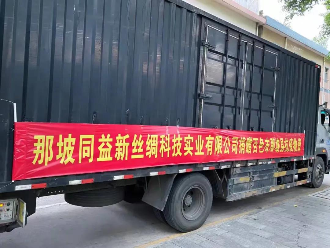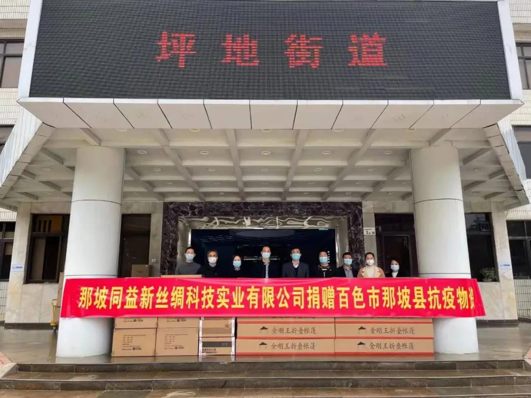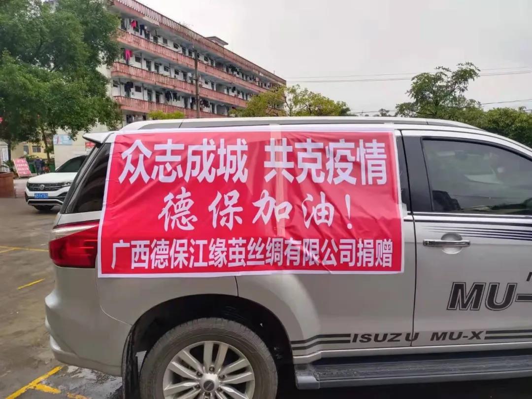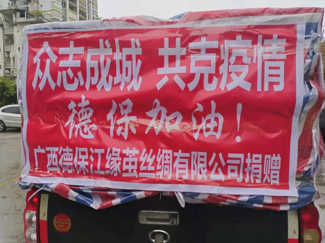 百色地區(qū)本土絲綢企業(yè)——那坡同益新絲綢科技實(shí)業(yè)公司、廣西平果時宜農(nóng)業(yè)開發(fā)有限公司、廣西平果縣惠民蠶業(yè)科技有限責(zé)任公司、廣西德保江緣繭絲綢有限公司多年來在服務(wù)好地方經(jīng)濟(jì)的同時,更以多種形式積極參與當(dāng)?shù)馗黜?xiàng)社會公益事業(yè),彰顯了企業(yè)擔(dān)當(dāng)和家國情懷。在此次助力百色疫情防控行動中,捐贈出醫(yī)療救護(hù)車、口罩、帳篷、木炭、礦泉水、康師傅面等物資,用實(shí)際行動表達(dá)他們與防疫一線人員團(tuán)結(jié)一致、共同防疫的決心和信心。