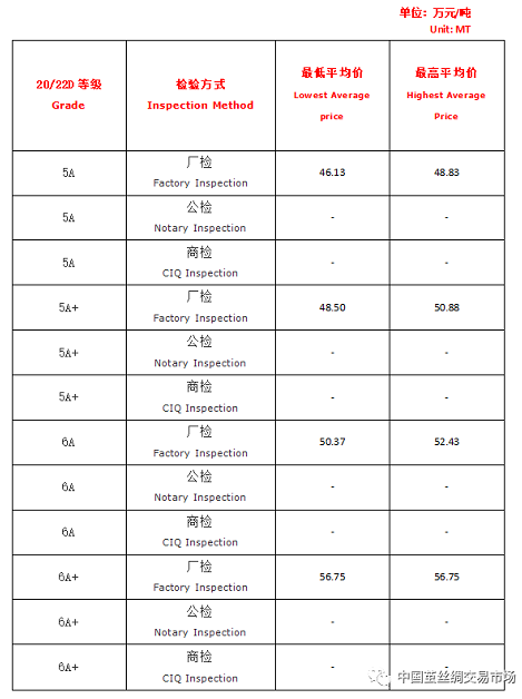 【本周高品位生絲協(xié)作單位成交價格區(qū)間(試運行)】