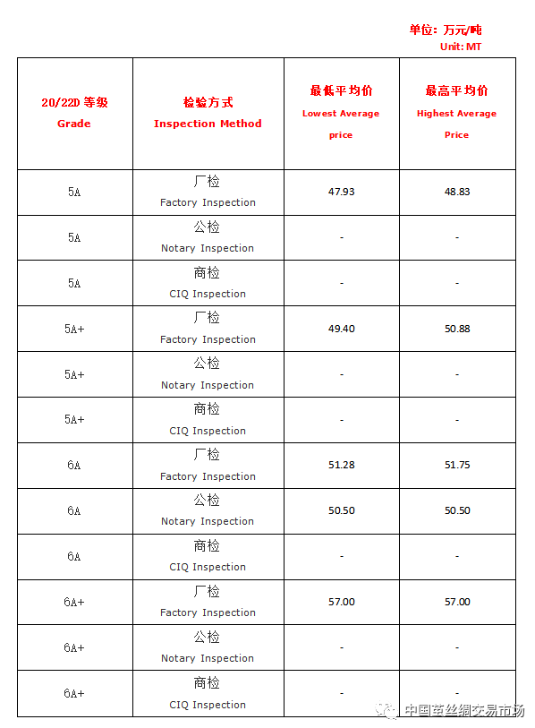 【本周高品位生絲協(xié)作單位成交價(jià)格區(qū)間(試運(yùn)行)】