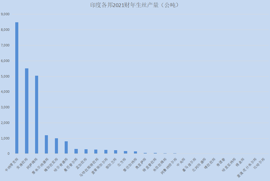 數(shù)據(jù)|印度各邦2021財(cái)年生絲產(chǎn)量(統(tǒng)計(jì)截止到2021年12月)