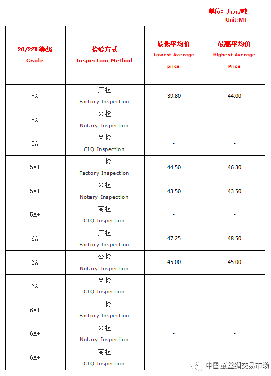 【本周高品位生絲協(xié)作單位成交價格區(qū)間(試運行)】