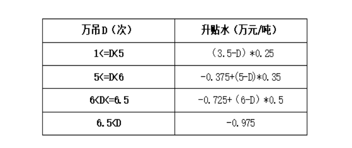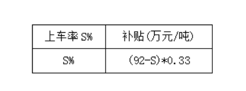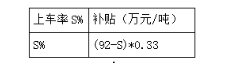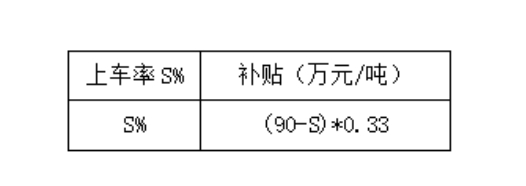 上車率補(bǔ)貼統(tǒng)一每1%升貼水0.33萬元/噸。
