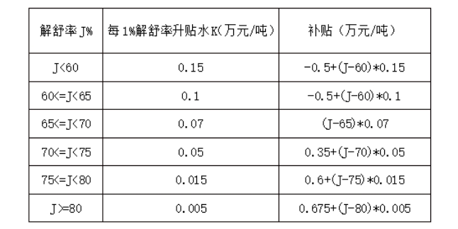 解舒率(J%)補(bǔ)貼=(J-60)*0.06