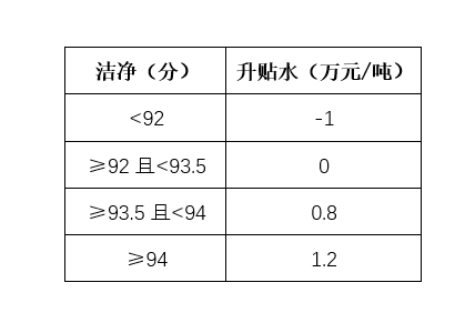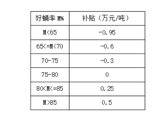 解舒率、上車率、潔凈、萬吊和好蛹率指標(biāo)主要影響影響產(chǎn)出質(zhì)量和生產(chǎn)效率成本,統(tǒng)一以升貼水方式參與計(jì)算。
