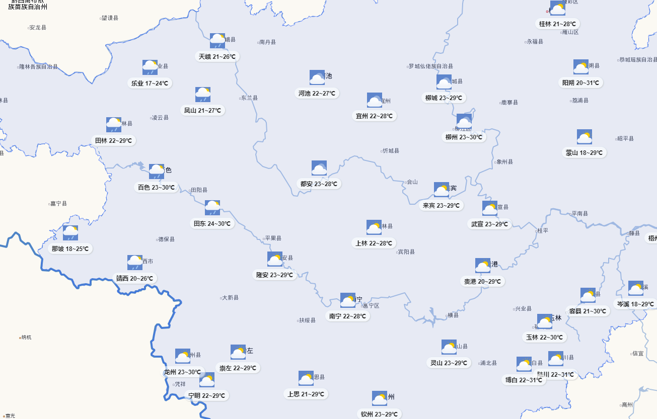 廣西天氣上,2022年5月1到16日,廣西平均氣溫21.3℃,比常年同期偏低3.4℃,為1951年有氣象記錄以來(lái)最低值,刷新了1991年同期21.7℃的最低紀(jì)錄。各地平均氣溫17.5(樂(lè)業(yè))~23.8(合浦)℃,共有64個(gè)縣(市、區(qū))的平均氣溫為有氣象記錄以來(lái)最低。