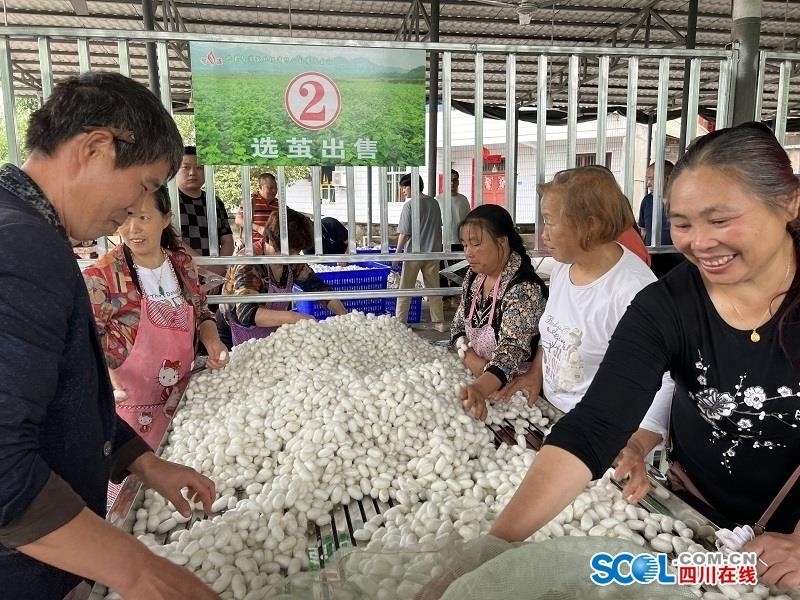 5月24日一大早,宜賓市珙縣孝兒鎮(zhèn)的繭站外已排起長(zhǎng)龍。當(dāng)天,是當(dāng)?shù)亟衲晔着Q繭正式上市。前來(lái)賣(mài)蠶繭的蠶農(nóng)們卸下一筐筐、一袋袋蠶繭,它們將通過(guò)“智慧”平臺(tái),被定價(jià)、收購(gòu)。