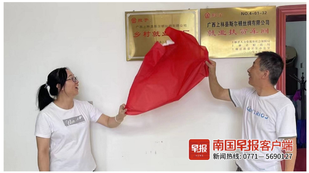 廣西上林縣斯爾頓絲綢有限公司鄉(xiāng)村就業(yè)工廠揭牌。