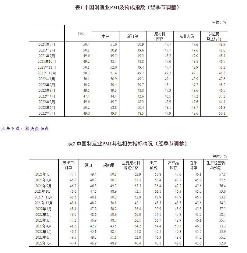 7月份,制造業(yè)采購(gòu)經(jīng)理指數(shù)(PMI)為49.0%,比上月下降1.2個(gè)百分點(diǎn),位于臨界點(diǎn)以下,制造業(yè)景氣水平有所回落。