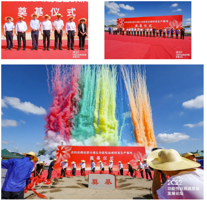 隆重的奠基儀式揭開了論壇的序幕,各位到場(chǎng)領(lǐng)導(dǎo)拿起新鍬為達(dá)利絲綢總部大樓及功能性絲綢研發(fā)生產(chǎn)基地建設(shè)項(xiàng)目的奠基石培土,為絲綢行業(yè)發(fā)展添動(dòng)力!