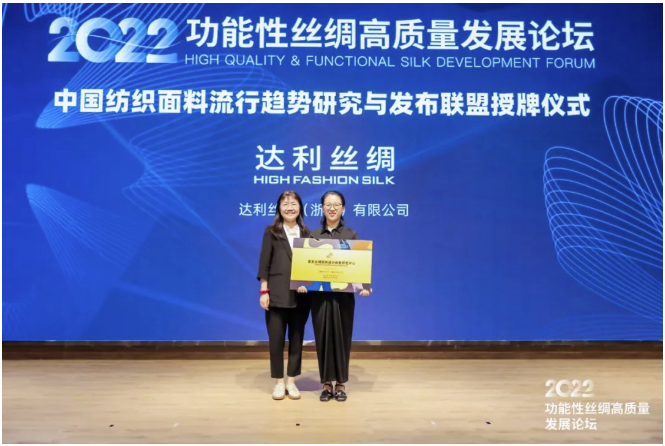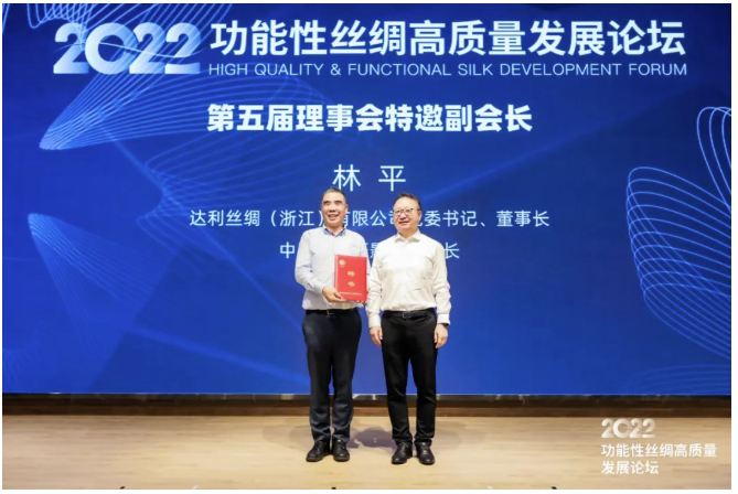 ◎達(dá)利絲綢林平董事長(zhǎng)上臺(tái)接受證書