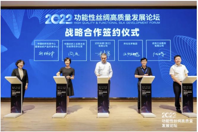 7月30日,2022功能性絲綢高質(zhì)量發(fā)展論壇在位于山水之城新昌縣的達(dá)利絲綢文化產(chǎn)業(yè)園順利召開。來自中國(guó)紡織工業(yè)聯(lián)合會(huì)、新昌縣、紡織高等院校以及絲綢產(chǎn)業(yè)鏈上下游企業(yè)的領(lǐng)導(dǎo)嘉賓、專家學(xué)者一同探討功能性絲綢的發(fā)展?jié)摿εc市場(chǎng)機(jī)遇,共謀行業(yè)高質(zhì)量發(fā)展。