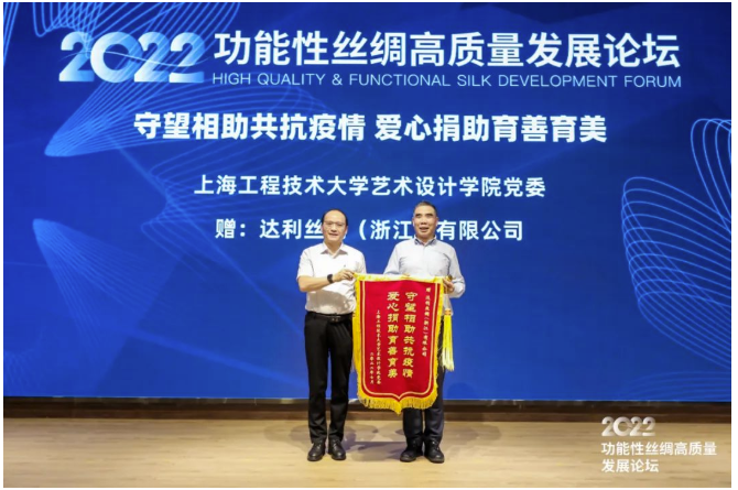 此外,上海工程技術(shù)大學(xué)藝術(shù)設(shè)計(jì)學(xué)院黨委為達(dá)利絲綢授予“守望相助共抗疫情 愛心捐助育善育美”錦旗,彰顯了達(dá)利絲綢的高度社會(huì)責(zé)任感。