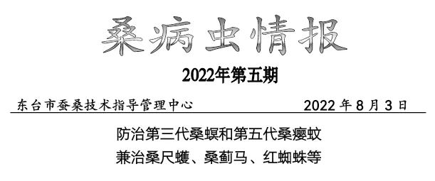 重點(diǎn)防治第三代桑螟、第五代桑癭蚊,兼治桑尺蠖、桑薊馬、紅蜘蛛等。