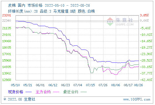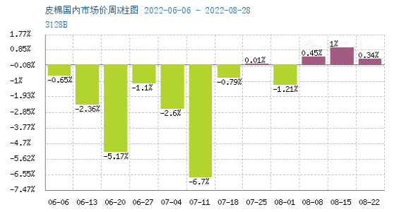 據(jù)生意社數(shù)據(jù)顯示,26日3128B皮棉價(jià)格在15966元/噸左右,較上一周上漲0.50%,環(huán)比上漲0.67%。