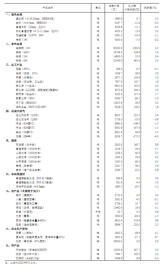 2022年9月中旬流通領(lǐng)域重要生產(chǎn)資料市場價格變動情況