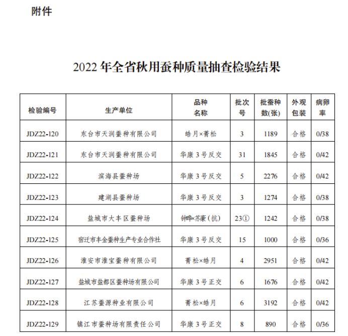 附件:2022年全省秋用蠶種質(zhì)量抽查檢驗結(jié)果