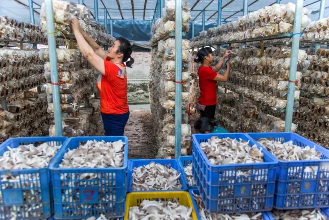 宜州區(qū)誼人桑枝食用菌基地收獲采摘現(xiàn)場