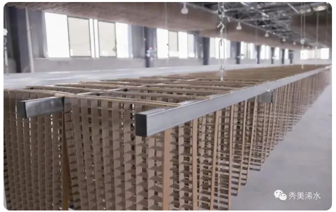 在前進(jìn)村新建的廠房里有很多安裝好的鋼架,其中懸掛在空中的鋼架,可以分層伸縮,鋼架中間紙質(zhì)的方格,就是用來養(yǎng)育蠶寶寶的小床。