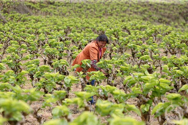 重慶市黔江區(qū)是全國石漠化嚴(yán)重發(fā)生地區(qū)之一。該區(qū)將石漠化治理與蠶桑產(chǎn)業(yè)發(fā)展相結(jié)合,大量栽植桑樹,并把蠶桑作為農(nóng)民脫貧致富、鄉(xiāng)村振興的產(chǎn)業(yè)來發(fā)展。圖為4月13日,黔江區(qū)濯水鎮(zhèn)雙龍村村民在管護石漠化地里的桑樹。