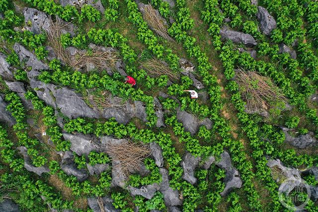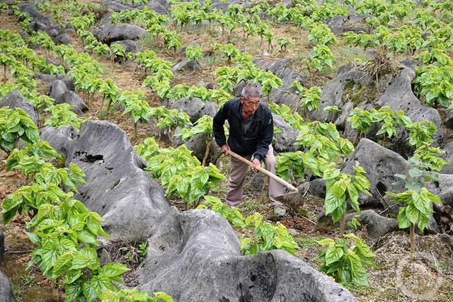 經(jīng)過10多年的發(fā)展,該區(qū)石漠化地里的桑樹已逐漸成林,土地的基巖裸露度由原來的60%以上降至30%以下。較大改善了黔江的生態(tài)環(huán)境,經(jīng)濟和社會效益得到明顯提升,實現(xiàn)了蠶桑產(chǎn)業(yè)和石漠化治理的“雙贏”。圖為5月6日,黔江區(qū)濯水鎮(zhèn)雙龍村村民在查看石漠化地里的蠶桑長勢。