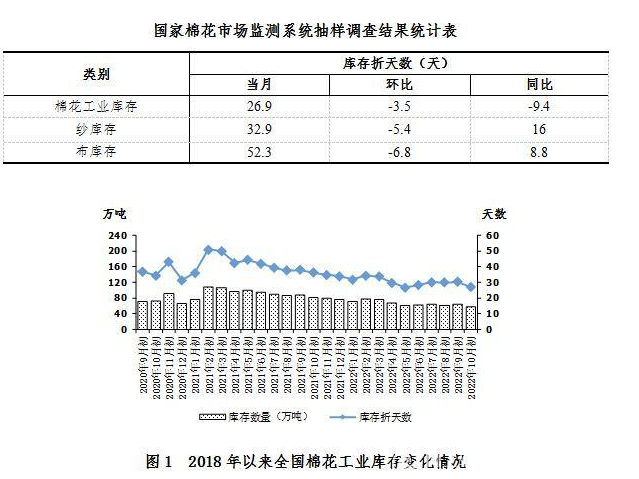 一、10月初全國棉花工業(yè)庫存使用天數(shù)約26.9天
