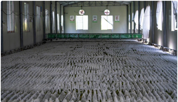 走進(jìn)位于從江縣洛貫經(jīng)濟(jì)開發(fā)區(qū)東西部協(xié)作企業(yè)貴州宏英實(shí)業(yè)有限公司旗下的英瀾桑業(yè)公司,整個蠶房一片雪白,一個個長方形的低矮木架上,成千上萬只蠶繭正忙著吐絲。