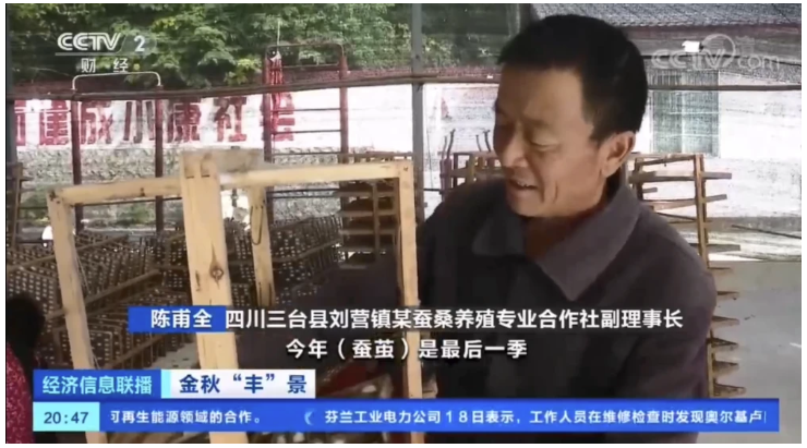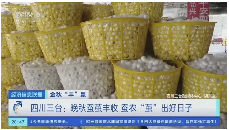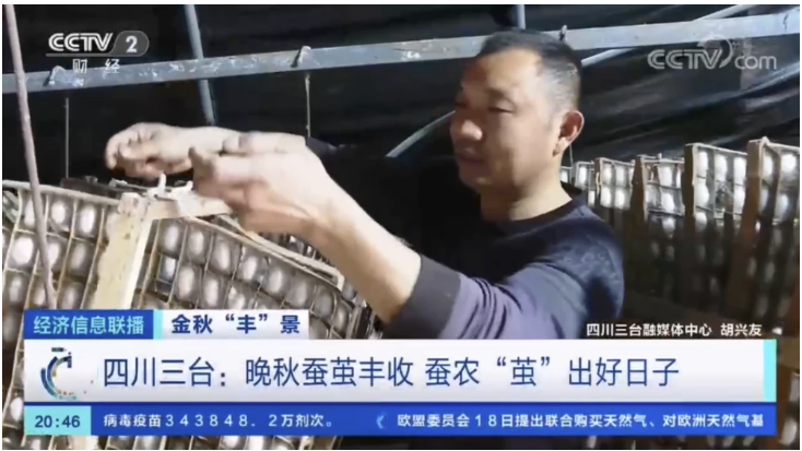 10月19日晚,中央廣播電視總臺CCTV-2《經(jīng)濟(jì)信息聯(lián)播》關(guān)注了綿陽市三臺縣晚秋蠶繭豐收情況,展現(xiàn)綿陽市蠶農(nóng)通過走特色產(chǎn)業(yè)發(fā)展路子,用雙手掙出美好新生活。