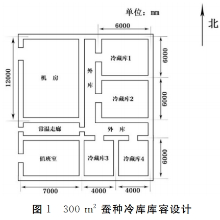 的面積、75.6t的庫容量和采用氨活塞式單級壓縮機制冷系統(tǒng),冷機制冷效率、庫房溫度等各項設(shè)計均能夠滿足使用要求,小型冷庫發(fā)揮了不小的作用,為河南省蠶桑生產(chǎn)的發(fā)展奠定了堅實基礎(chǔ)。