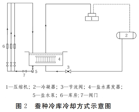 蠶種冷庫與其它類型的冷庫相比,有其自身的特殊性:一是蠶種冷庫屬于高溫冷藏庫,蠶卵不同發(fā)育階段對冷庫的溫度要求有所不同,溫度的上下浮動一般要控制在1℃范圍內(nèi):二是選擇氨作為制冷劑,鹽水作為載冷劑,必須采用間接冷卻方式:三是冷藏的目的和作用不同,果蔬和肉食品冷庫重點在于如何保鮮保質(zhì),而蠶種冷庫重點是控制蠶卵的發(fā)育進(jìn)程以保證不同養(yǎng)蠶季節(jié)的蠶種需求。