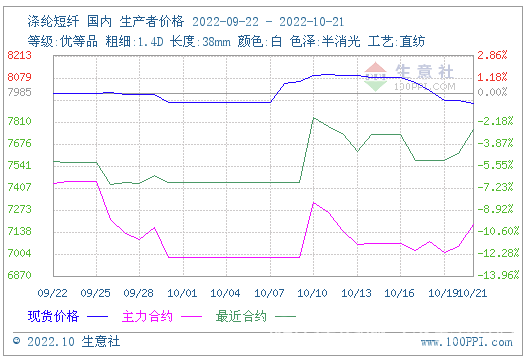 現(xiàn)貨價(jià)格:本周(10.17-10.21)國(guó)內(nèi)滌綸短纖現(xiàn)貨行情呈震蕩走低態(tài)勢(shì)。據(jù)生意社價(jià)格監(jiān)測(cè)顯示,10月21日國(guó)內(nèi)滌綸短纖均價(jià)報(bào)價(jià)在7922元/噸左右,較周一下跌1.61%,比去年同期下跌4.73%。