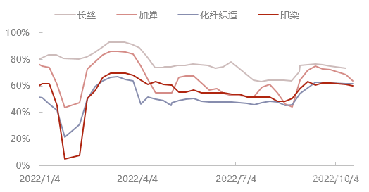 圖2 滌綸長(zhǎng)絲及其下游相關(guān)行業(yè)開(kāi)工走勢(shì)圖