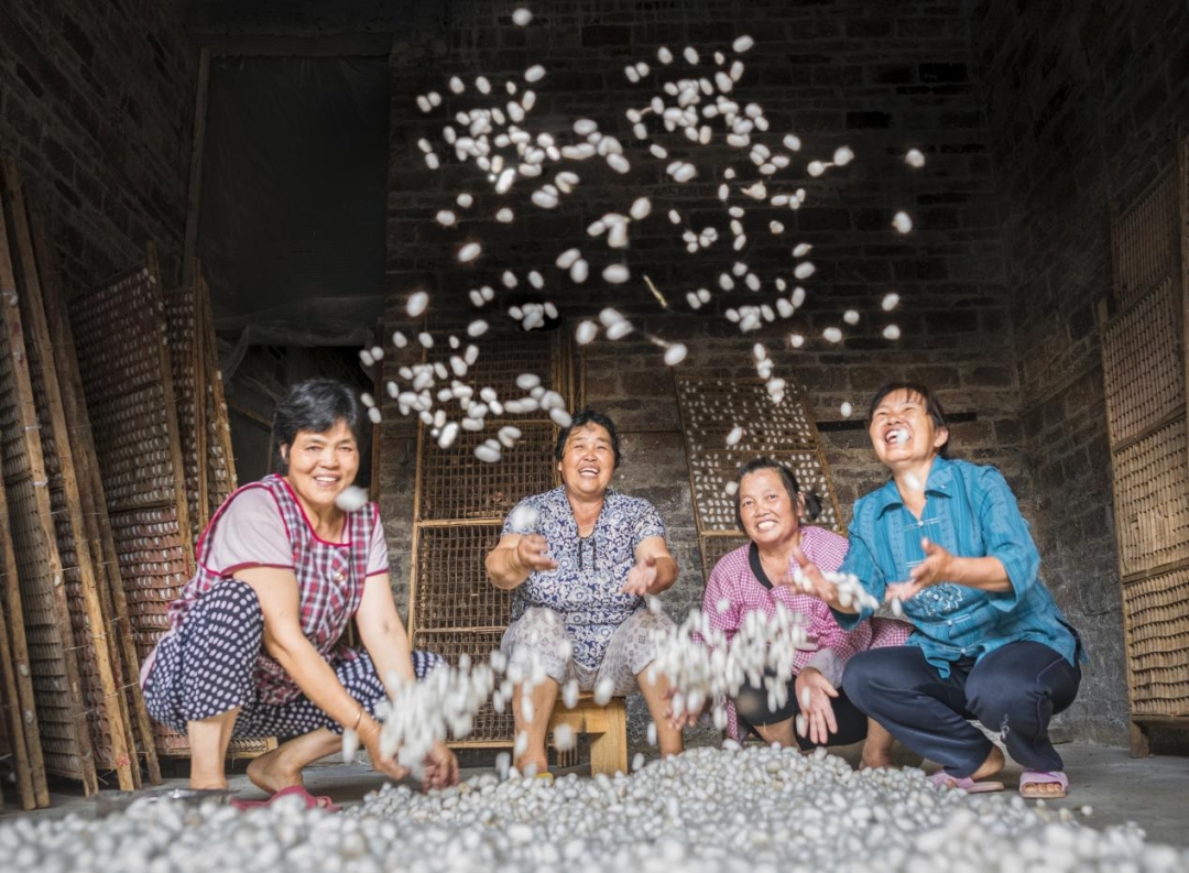 蠶繭獲豐收,蠶農(nóng)樂悠悠。(資料圖)