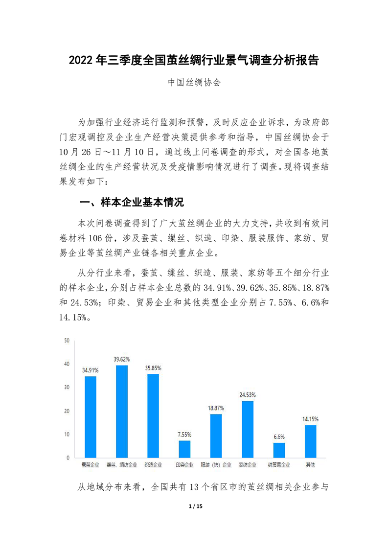行業(yè)報告丨2022年三季度全國繭絲綢行業(yè)景氣調查報告