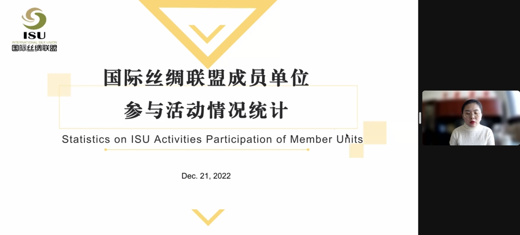 聯(lián)盟秘書處通報了國際絲綢聯(lián)盟成員單位參與活動情況。根據(jù)聯(lián)盟章程和運行機制,秘書處將結(jié)合匯總情況、成員單位行業(yè)影響力、聯(lián)盟成員國分布等情況綜合評判,作為2023年國際絲綢聯(lián)盟組織機構(gòu)調(diào)整中秘書處推薦的重要依據(jù)。