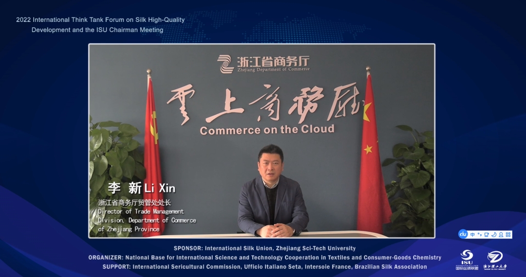 浙江省商務(wù)廳對外貿(mào)易管理處處長李新為大會致辭。李新介紹了浙江省絲綢產(chǎn)業(yè)的歷史傳承,以及浙江省對絲綢產(chǎn)業(yè)的政策支持,并表示會議的召開正逢其時,希望國際絲綢聯(lián)盟繼續(xù)做好企業(yè)和政府的溝通橋梁作用,積極推進國際經(jīng)貿(mào)活動,聯(lián)動政府、企業(yè)和組織,共同促進絲綢產(chǎn)業(yè)的國際化和高質(zhì)量發(fā)展。