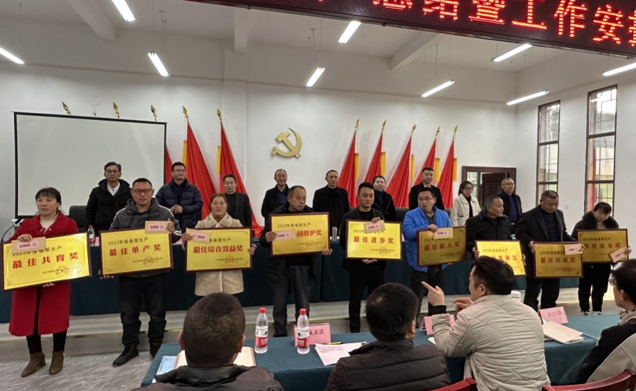 接下來,由布碧絲技術(shù)經(jīng)理余建盛宣讀了2022年度優(yōu)秀業(yè)主表彰決定,最佳共育獎1人,最佳單產(chǎn)獎1人,最佳效益獎1人,最佳桑園管護獎1人,最佳進步獎1人,最佳新人獎1人,最佳集體獎1人,最佳環(huán)保獎1人,最佳安全獎 1人,并對以上優(yōu)秀的業(yè)主們頒發(fā)了榮譽獎牌和獎金,對他們2022年的卓越貢獻,表示了衷心的祝賀和感謝。