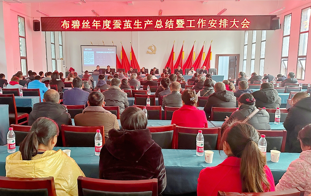 立春伊始,正月十五剛過,迎著萬畝桑園的第一縷陽光,銅鼓鄉(xiāng)政府會議室里人聲鼎沸了,來自儀隴縣六個鄉(xiāng)鎮(zhèn)的上百位布碧絲業(yè)主,懷著歡樂激動的心情陸續(xù)進入會場,參加“布碧絲2022年生產(chǎn)總結(jié)暨2023年生產(chǎn)部署大會”。