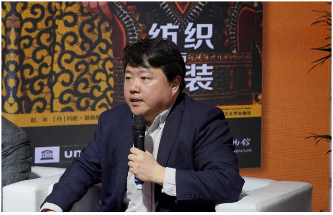 與會專家現場探討了《紡織與服裝》的精彩內容。中方主編趙豐回顧了新書的策劃契機和寫作經歷,闡述了聯合國教科文組織和中國絲綢博物館在“絲綢之路”專題框架下合作推出首部著作的重要意義,以及中國絲綢博物館與浙江大學出版社共同規(guī)劃“中國絲綢藝術大系”等項目的合作計劃。張柏春先生從《紡織與服裝》這類圖書“小切口看大歷史”的文化現象談起,探討了科技和人文交流中的絲路精神。巴莫曲布嫫女士從聯合國教科文組織保護非遺的“火種”意義出發(fā),認為本書對于促進文化間對話和互動有積極影響。吳浩先生就“一帶一路”十周年背景下的絲綢之路展開論述,分析了絲綢之路的歷史價值與當代啟示。田苗先生回顧了國家圖書館與中方主編趙豐、現場專家的合作機緣,以讀者視角分享了《紡織與服裝》的閱讀感受。