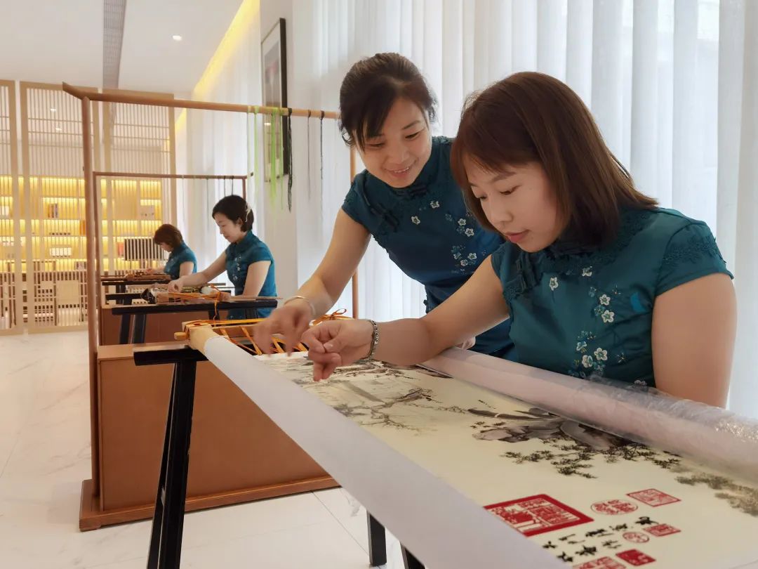 會(huì)后還舉行了“她”力量創(chuàng)業(yè)就業(yè)風(fēng)采展,楊家繡房的繡娘們?cè)谡箷?huì)上表演刺繡技藝,對(duì)外展示繡品及相關(guān)絲制品,引來(lái)行人駐足觀看。
