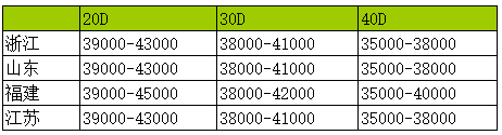 當(dāng)前氨綸市場主流價格統(tǒng)計(單位:元/噸)