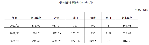 2月,隨著疫情防控較快平穩(wěn)轉(zhuǎn)段,穩(wěn)經(jīng)濟(jì)政策的效果持續(xù)顯現(xiàn),我國經(jīng)濟(jì)運(yùn)行整體呈企穩(wěn)回升態(tài)勢(shì),行業(yè)信心有所增強(qiáng),紡織廠開機(jī)率攀升,紡織品銷售順暢,但因價(jià)格較低而利潤不佳。國內(nèi)棉花加工仍在進(jìn)行,市場(chǎng)供應(yīng)寬松,受期貨價(jià)格震蕩下跌影響國內(nèi)外棉價(jià)回落,內(nèi)外價(jià)差縮小。中國棉花協(xié)會(huì)預(yù)計(jì),2022年度全國棉花總產(chǎn)量617.9萬噸,同比增長7%,較上期相同;進(jìn)口量160萬噸,較上期下調(diào)10萬噸,同比下降7.4%,主要是由于國內(nèi)外棉價(jià)持續(xù)倒掛,進(jìn)口需求有所下降;棉花消費(fèi)量、出口量分別760萬噸、3萬噸,較上期相同;期末庫存相應(yīng)調(diào)整為846.93萬噸,同比增長1.8%。