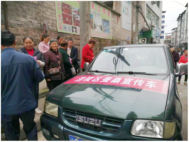 為了抓好今年蠶桑生產(chǎn),力爭(zhēng)取得春蠶生產(chǎn)開門紅,涪陵區(qū)著力加大蠶桑宣傳力度,目前蠶桑宣傳火熱進(jìn)行中。從3月21日開始,重慶鴻盛繭絲綢公司專門組織了蠶桑宣傳車,利用趕場(chǎng)天到珍溪、百勝、南沱、新妙、李渡、龍橋、藺市、增福、焦石、馬武、青羊等蠶桑主產(chǎn)鄉(xiāng)鎮(zhèn)進(jìn)行巡回宣傳,計(jì)劃連續(xù)宣傳半個(gè)月。同時(shí)公司印制了《致全區(qū)蠶農(nóng)的公開信》1萬(wàn)份發(fā)放給廣大蠶農(nóng)。各鄉(xiāng)鎮(zhèn)蠶業(yè)站采取開共育室會(huì)、走村入戶和職工包村包片等多種方式進(jìn)行廣泛宣傳。宣傳的主要內(nèi)容:一是政府重視蠶桑發(fā)展;二是繭絲市場(chǎng)行情;三是公司的惠農(nóng)措施;四是當(dāng)前春蠶生產(chǎn)工作。通過(guò)蠶桑宣傳,幫助廣大蠶農(nóng)樹立信心,提高他們的養(yǎng)蠶積極性。