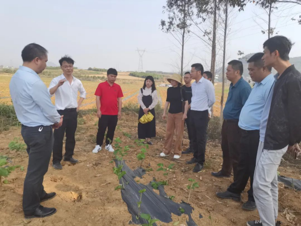 考察組到達(dá)的第一站是新圩鄉(xiāng)龍岑村。2022年,新圩鄉(xiāng)桑園面積達(dá)9200多畝,鮮繭產(chǎn)量1360噸,農(nóng)戶種一畝桑養(yǎng)蠶年收入約為10000元。新圩鄉(xiāng)相關(guān)負(fù)責(zé)人從桑苗品種、桑樹種植、桑地管護(hù)到三齡、四齡、五齡蠶養(yǎng)殖過程進(jìn)行詳細(xì)講解,現(xiàn)場解答考察組疑問,并就桑蠶業(yè)的發(fā)展進(jìn)行探討交流。