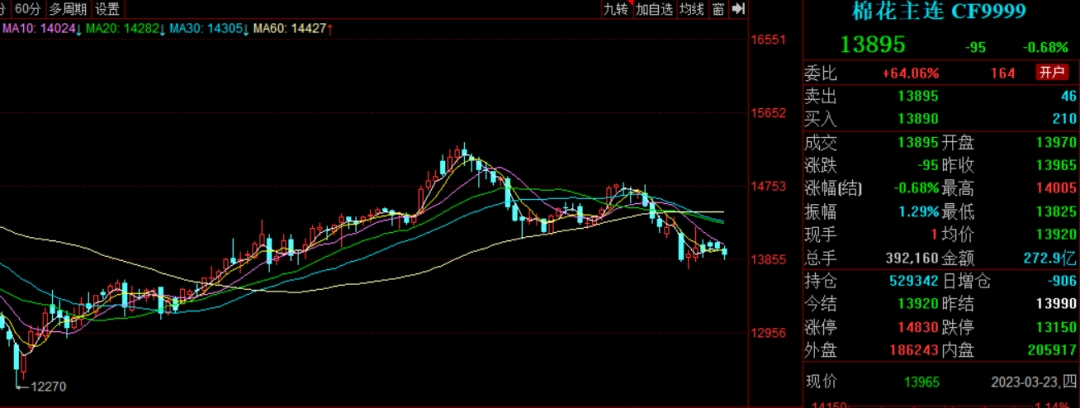 中信期貨資深研究員 吳靜雯:下跌主要有產業(yè)和宏觀兩個層面的原因。宏觀層面,海外銀行風險事件沖擊市場,股市、商品均下行,ICE棉期價大幅下挫,帶動鄭棉下跌。產業(yè)層面,供應方面,本年度中國棉花增產,大約增量在80-90萬噸,加工周期較往年延長一個多月,供應持續(xù)增量,商業(yè)庫存去化節(jié)點延后,供應增多使得棉價承壓;需求方面,內外需分化,紡服出口受制于海外高庫存以及終端進口需求萎縮而同比持續(xù)下滑,內需雖然持續(xù)向好,但復蘇進度不算快。雖然未來預期向好,但短期上漲驅動不足,在宏觀利空擾動沖擊下,棉價因此下跌。