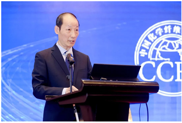 圖 | 中國化學(xué)纖維工業(yè)協(xié)會會長陳新偉主持會議第一階段