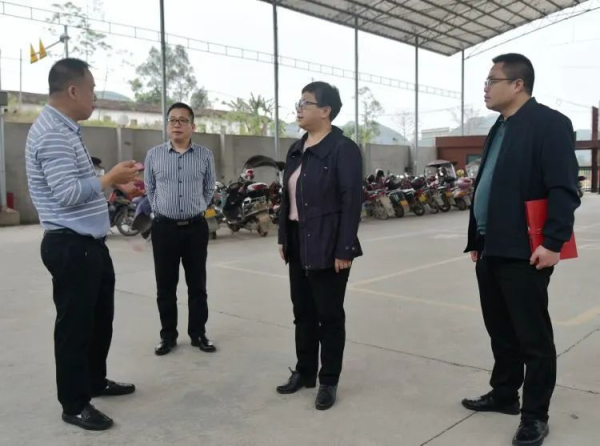 翟紅玲(右二)在宜州常樂繭絲有限公司調(diào)研。樊仲宇(左二)一同調(diào)研。