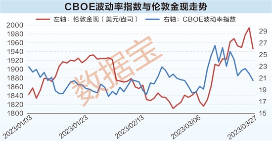 3月8日,美國(guó)硅谷銀行爆雷;3月15日,歐洲瑞士信貸出現(xiàn)流動(dòng)性危機(jī)。海外銀行業(yè)風(fēng)險(xiǎn)事件集中爆發(fā),對(duì)歐美資本市場(chǎng)造成強(qiáng)烈沖擊,避險(xiǎn)情緒快速升溫,CBOE波動(dòng)率指數(shù)一度沖高至30.81,3月9日至13日激增38.78%,帶動(dòng)國(guó)際金價(jià)水漲船高。