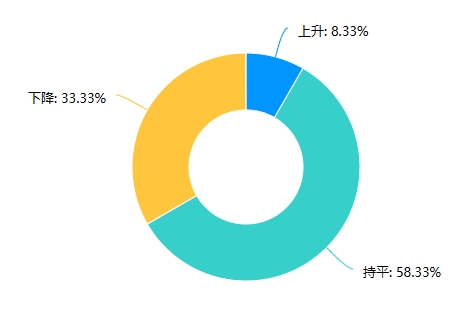 針對員工數(shù)量,選擇增加20%以上的1家,占比為2.78%;增加5-20%的為7家,占比為19.44%;選擇持平(±5%以內(nèi))的為22家,占比為61.11%;選擇降低5-20% 的為6家,占比為16.67%;選擇降低20%以上的,無。