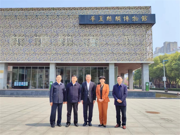 4月1日,葡中經(jīng)濟(jì)文化促進(jìn)協(xié)會(huì)會(huì)長(zhǎng)陳玉新博士一行來(lái)安徽京九絲綢股份公司考察。安徽省阜陽(yáng)市委常委、統(tǒng)戰(zhàn)部部長(zhǎng)張俊杰等相關(guān)領(lǐng)導(dǎo)陪同,中國(guó)絲綢協(xié)會(huì)副會(huì)長(zhǎng)、公司董事長(zhǎng)馬品德向考察團(tuán)匯報(bào)了公司生產(chǎn)經(jīng)營(yíng)情況并陪同考察。