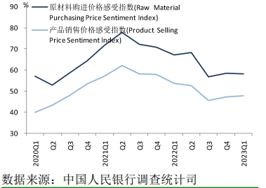 產(chǎn)品銷售價(jià)格感受指數(shù)。來源:中國人民銀行